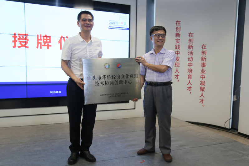 7月31日上午,林育青副院长带队参加2020年“创响中国”汕头华侨试验区双创活动周启动仪式暨海智计划服务科技经济融合发展行动工作方案活动。会上,林育青副院长代表bwin必赢唯一官方网站与汕头华侨试验区管理委员会签订了战略合作框架协议,并就双方共建“汕头市华侨经济文化应用技术协同创新中心”举行了授牌仪式。标志着汕职院在建设市级应用技术协同创新中心等科研平台上迈出了新的步伐。