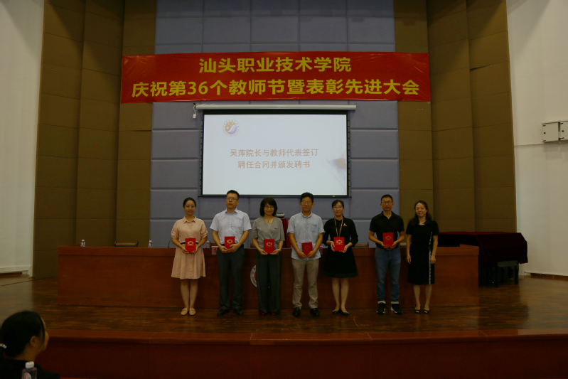 吴萍院长与教师代表签订聘任合同并颁发证书。