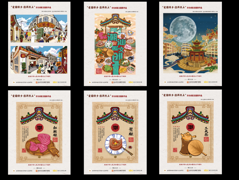 本次展览在人文社科系党总支的指导下,由语言文化传媒教研室联合学院的校企合作单位——汕头市文化创意产业协会、汕头工业设计城公开向社会征集20幅作品,集中展示了爱国侨乡汕头的饮食风俗和风土人情,巧妙融合了潮汕文化元素与插画、设计等创意元素。多种潮汕经典被囊括其中——吃喝有红桃粿、鲎粿和工夫茶等,玩乐有鮀香腊味店、小公园亭、百货大楼等。每幅作品都蕴含着创作团队对潮汕文化的理解和表达,饱含着创作团队对潮汕文化的喜欢与热爱。为完成此次布展,2018级文秘专业39名学生在李沫彦老师的带领下,与园区管理方一起完成活动策划、场地布置等工作,使同学们在布展中感受潮汕特色,品味本土文化,体验并进行文化创意活动。