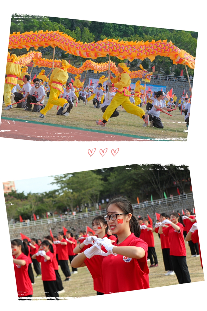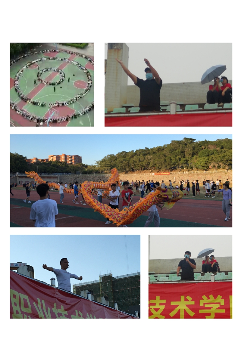 (李洪坤主任、林森虎老师指挥团体操、舞龙训练)