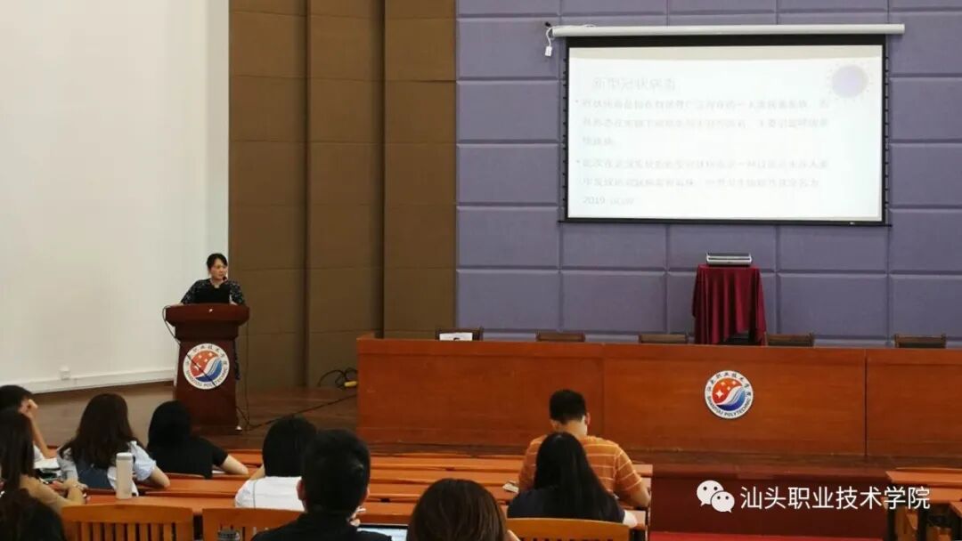 根据学院疫情防控的部署,积极推进健康教育宣传活动,宣传普及新冠肺炎和其他传染病的防疫知识,做好学院传染病的防控工作,学院于2020年9月3日上午开展防疫知识专题讲座,各学系学生科长及辅导员、各校区消毒负责人员、卫生所全体医护人员、物业公司全体管理人员和保安保洁人员参加了本次讲座。讲座由总务处卫生所所长洪晓翀同志主持。