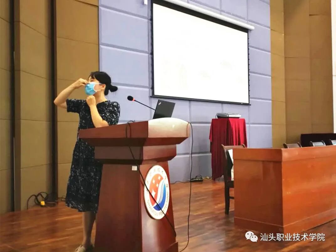 此次防疫专题培训由学院兼职驻校医护人员林韵主管护师主讲。林护师深入浅出地讲解了常态化新冠肺炎疫情防控机制下、如何做好个人防护、环境消毒和消毒液的配置等,尤其是对日常操作过程中看似习惯、却存在巨大安全隐患的细节进行了规范,对如何正确的佩戴口罩、正确进行七步洗手、正确进行体温检测等做了详细的讲解并进行了现场演示。