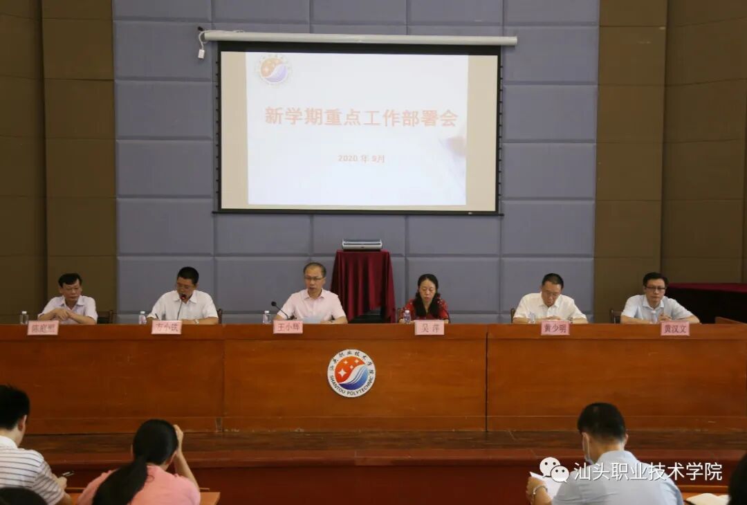 2020年9月1日上午,学院在院本部学术报告厅召开新学期重点工作部署会,对完成今年重点工作任务进行再部署、再动员,提振精气神,以实干担当努力实现2020年“党建创新年”“质量提升年”的目标。会议由学院党委副书记方小铁主持。