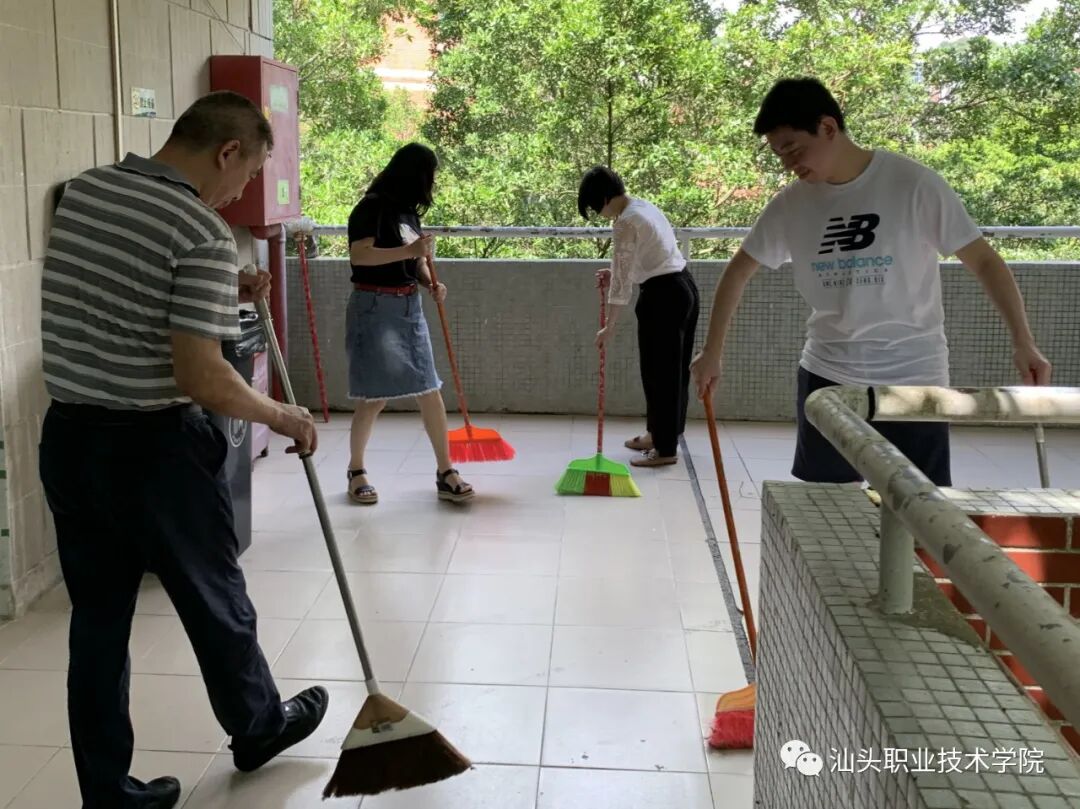 7月20日上午,在系主任刘钦创的带领下,全体教职员工对系办公室、教室、实训室等及周边环境进行一次卫生大清洁活动。活动中,大家发扬不怕脏、不怕累、不怕苦精神,团结协作,密切配合。全体教职员工认真细致、重点对杂草、卫生死角以及蚊虫滋生环境进行清理,虽然汗流浃背,却都乐在其中。大家纷纷表示能够为“创文”贡献自己一份力量而感到骄傲、自豪。经过一个上午的辛勤劳动,系办公区域和教学、实训区域及周边环境变得更加干净与清爽,焕然一新。