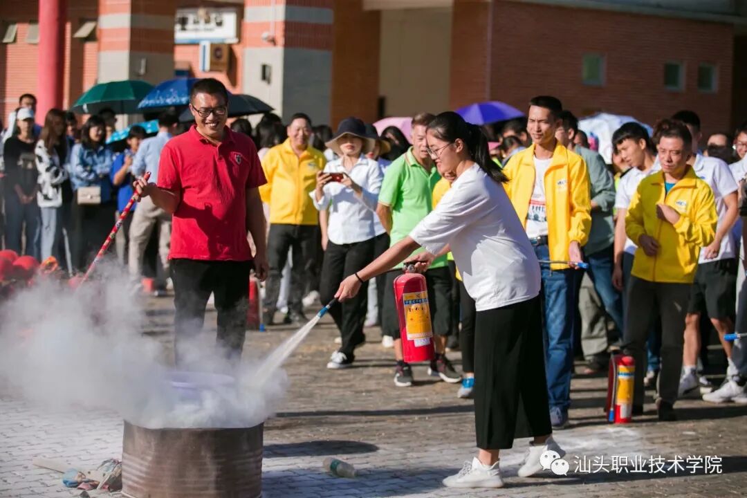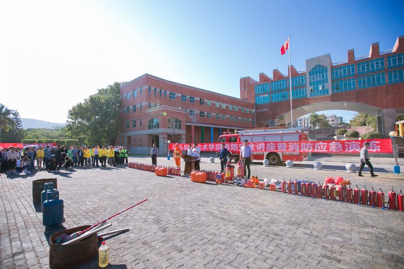 本次活动,汕头市消防救援支队派出精干指战员为学院师生员工和物业管理人员讲解了火灾的定义和分类、建筑火灾的发生和发展过程、防火和灭火的基本原理等消防安全知识、火灾自动报警系统的基本知识及消防设备设施如何正确使用,并演示了火场应急疏散逃生;