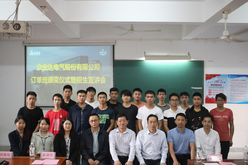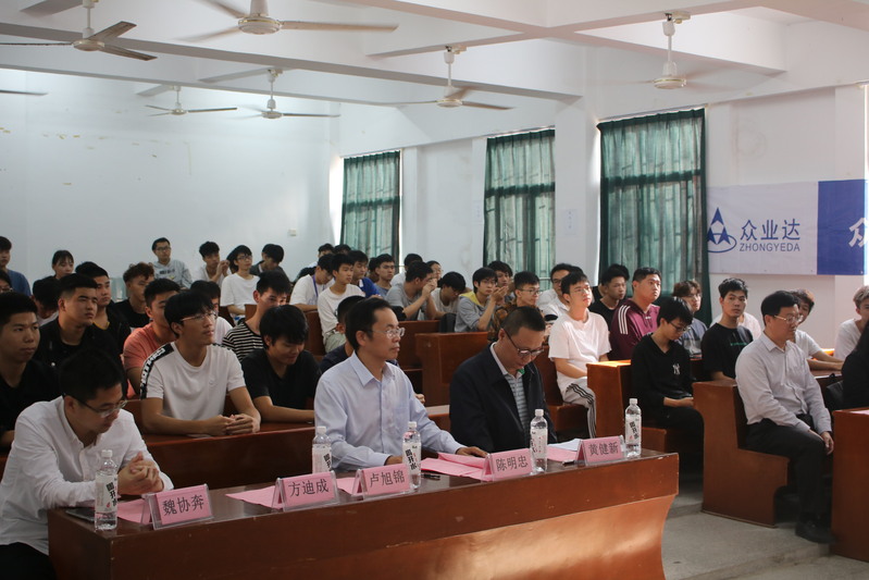 11月27日下午,机电工程系在教学三区110举行“众业达”奖助学金颁发暨第二次招生宣讲会。众业达电气股份有限公司副总经理陈健荣,人力资源部人力经理邱燕纯、人力资源部人才发展专员谢娜儿、人力资源部培训专员陈晓云以及学院教务处副处长黄健新、机电工程系主任陈明忠、机械教研室主任方迪成、专任教师魏协奔出席颁奖和宣讲会。2019级众业达班和2019级机电一体化专业部分班级参加颁奖和宣讲会,会议由方迪成主持。