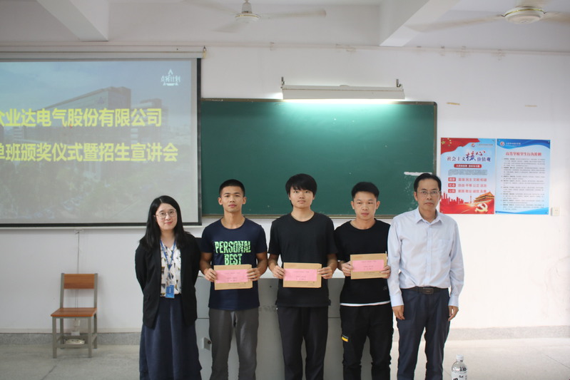 黄健新副处长在致辞中向获得本次“奖助学金”的同学表示热烈的祝贺,向关心和支持我院发展的众业达电气股份有限公司表示衷心的感谢。黄副处长指出,从2019年筹划开办众业达订单班以来,学院和众业达电气股份有限公司一起不停地探索科学、高效、多方共赢的合作办学模式。为了办好“众业达订单班”,众业达公司真诚付出:一是成立“众业达”奖助学金,激励在校大学生勤奋学习、积极进取。二是派企业员工到校与学生互动交流,让学生提前感受企业文化,增进学生对企业的感情。三是在众业达公司建立大学生校外实训基地,接受学生观摩见习、岗前培训和跟岗实习,学生跟随师傅工作,真正学到职业岗位必需的技术和技巧。四是实习结束后,学生自主选择是否留在众业达公司工作,解决了学生就业的顾之忧。他勉励在座的同学以优秀企业家和获奖同学为榜样,锐意进取,发奋图强。勉励获奖学生要心存感念,感恩学院、感恩企业,努力学习,以优异成绩回报在成长路上关心、支持、帮助过自己的人。