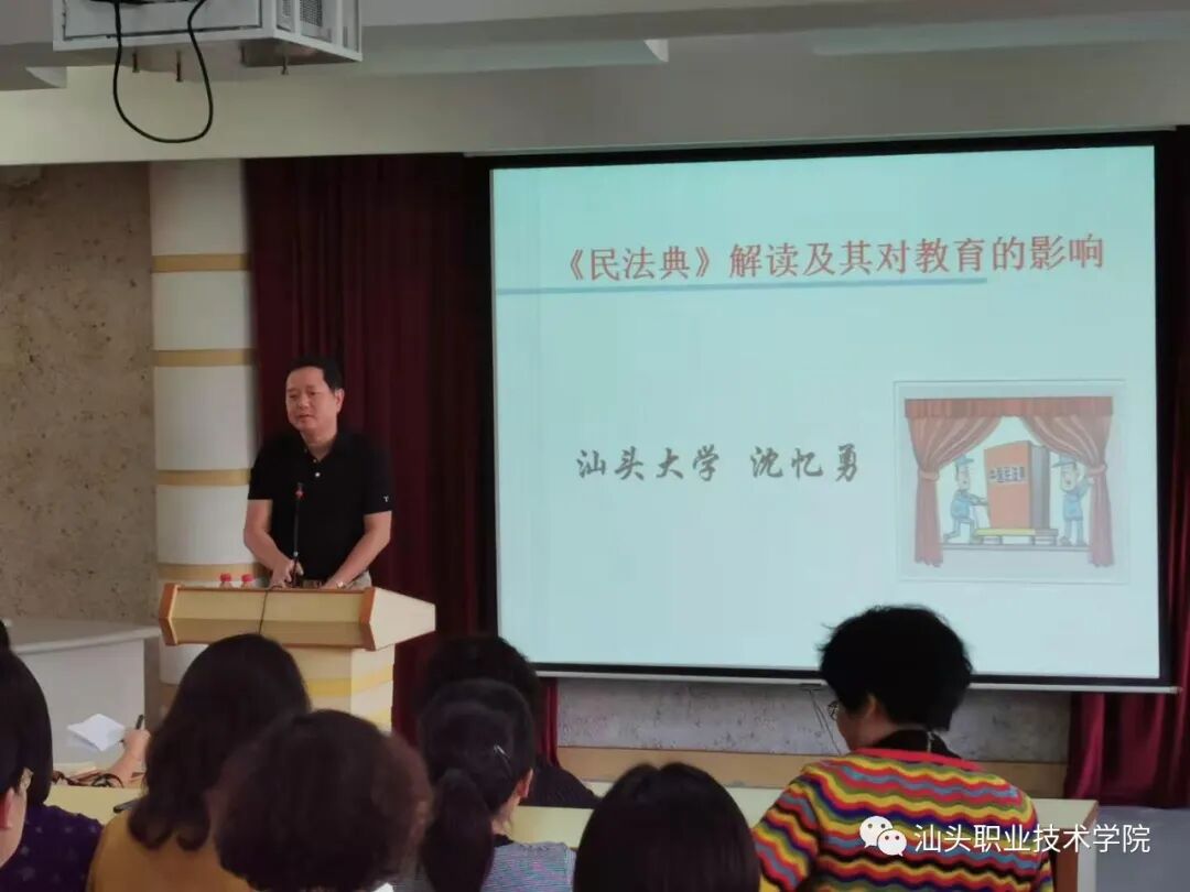 经济社会在不断发展,生活方式在不断变化,社会关系在不断调整,调节社会关系的民法也需要与时俱进。2020年5月28日颁布的民法典是“社会生活的百科全书”,是信息时代的“生活指南”,它将最大限度地保障人民对美好生活追求。为配合学院开展的“民法典让生活更美好”第二届广东省法治文化节活动,学前教育系党总支于11月27日,组织全系教职员工及学生入党积极分子,举办了一场题为“民法典解读及其对教育的影响”的讲座,邀请汕头大学硕士生导师沈忆勇副教授主讲。