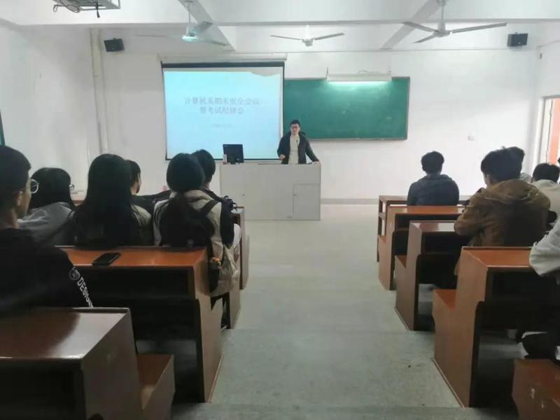 计算机系在教学三区210教室召开期末安全会议暨考试纪律会,系党总支专职副书记陈国辉、学生科科长陈子艺、辅导员老师和各班班长、团支书、宿舍长参加了会议,会议由陈子艺科长主持。
