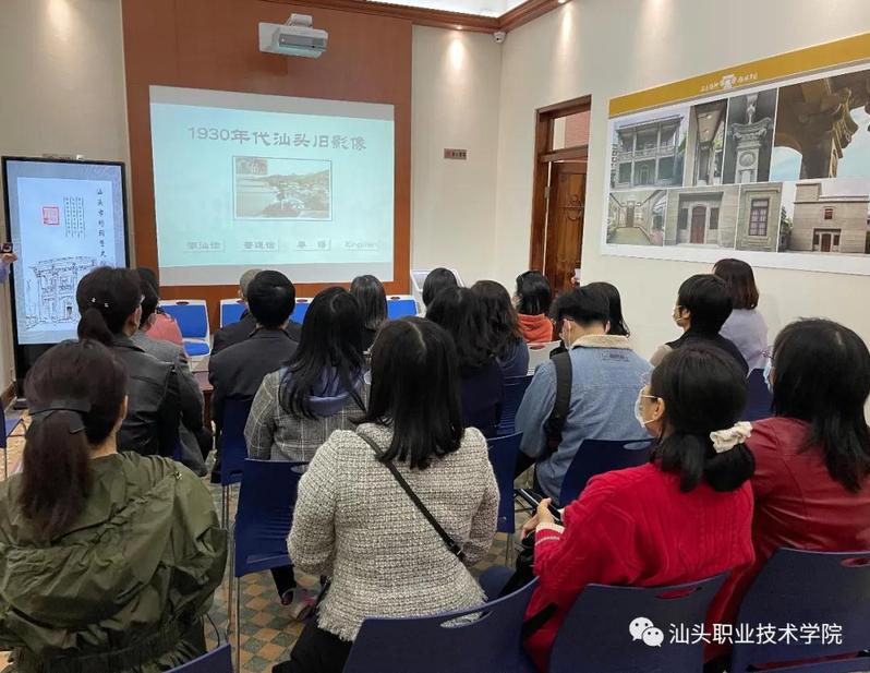 首先全体人员观看了时长8分13秒的《1930年代汕头旧影像》,了解了汕头开埠之后中西经济来往和文化碰撞的繁荣景况。大家对影像中的海关钟楼、英国领事馆、税务司公馆、潮州湘子桥、牌坊街等地标建筑都留下深刻印象。