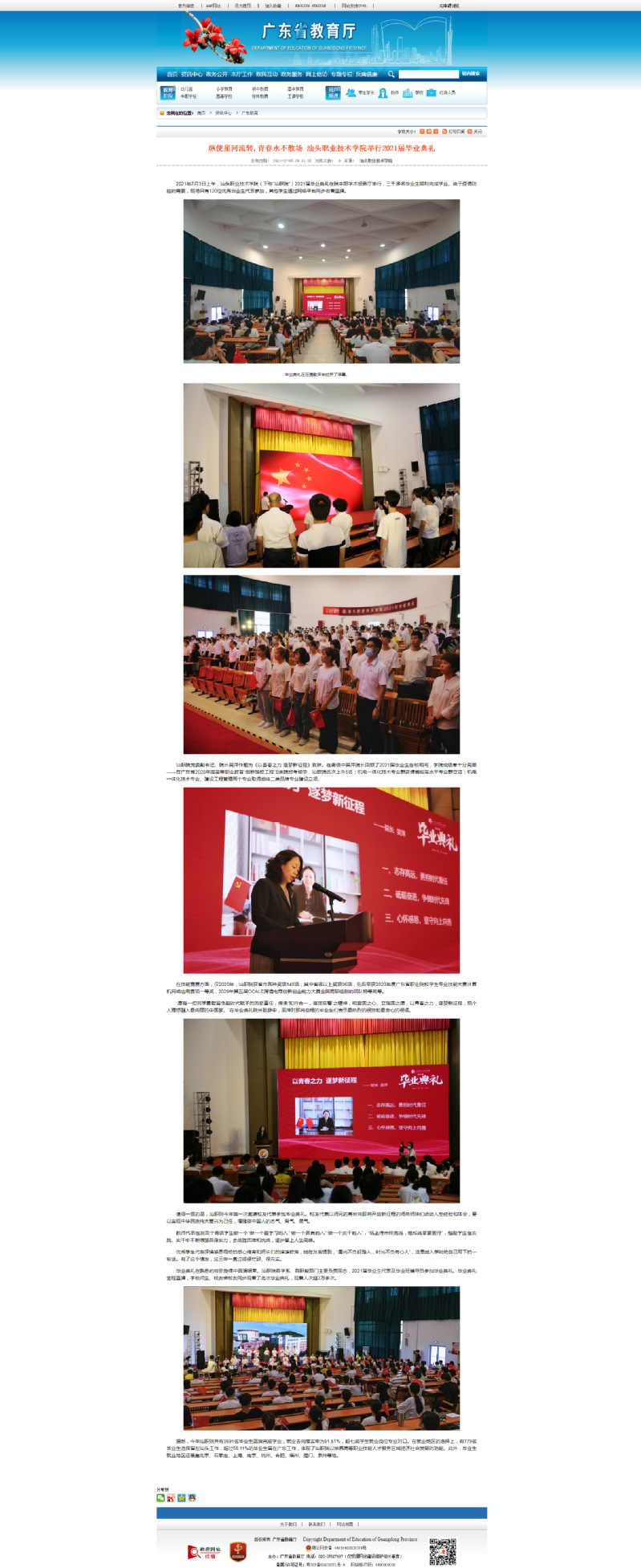 广东省教育厅2021-07-05刊登我院简讯《纵使星河流转 ,青春永不散场 bwin必赢唯一官方网站举行2021届毕业典礼》
