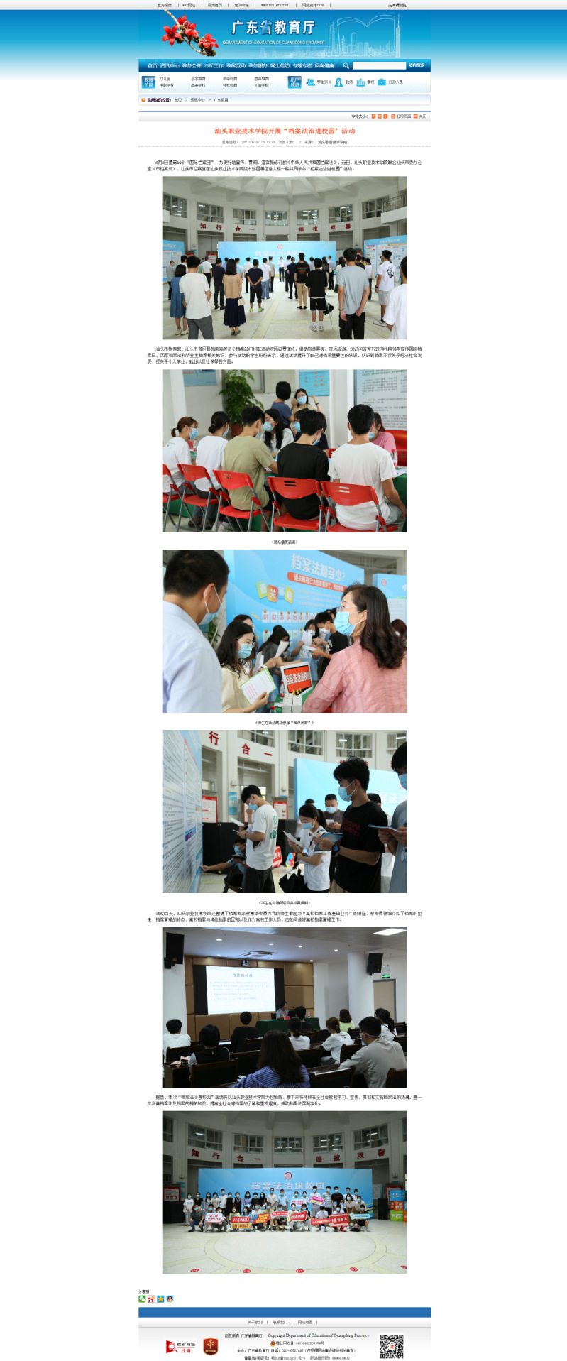 广东省教育厅2021-06-15刊登我院简讯《bwin必赢唯一官方网站开展“档案法治进校园”活动》
