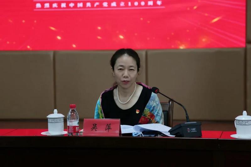 党委副书记、院长吴萍简要谈了两条感受。一是回顾过去,感到无比自豪;二是展望未来,信心百倍。中国共产党成立时只有50多名党员,今天已经成为拥有9500多万名党员、领导着14亿多人口大国、具有重大全球影响力的世界第一大执政党。一百年来,中国共产党团结带领中国人民,以“为有牺牲多壮志,敢教日月换新天”的大无畏气概,书写了中华民族几千年历史上最恢宏的史诗。这一百年来开辟的伟大道路、创造的伟大事业、取得的伟大成就,必将载入中华民族发展史册、人类文明发展史册!我们党走过了一百年辉煌历程,开启了下一个100年的光辉历程。我们要投入到中华民族伟大复兴中去,牢记初心使命,坚定理想信念,践行党的宗旨。教育者的初心是为党育人,为国育才,培养德智体美劳全面发展的学生,要把伟大的复兴中国梦落实到学院发展中来。