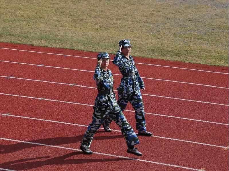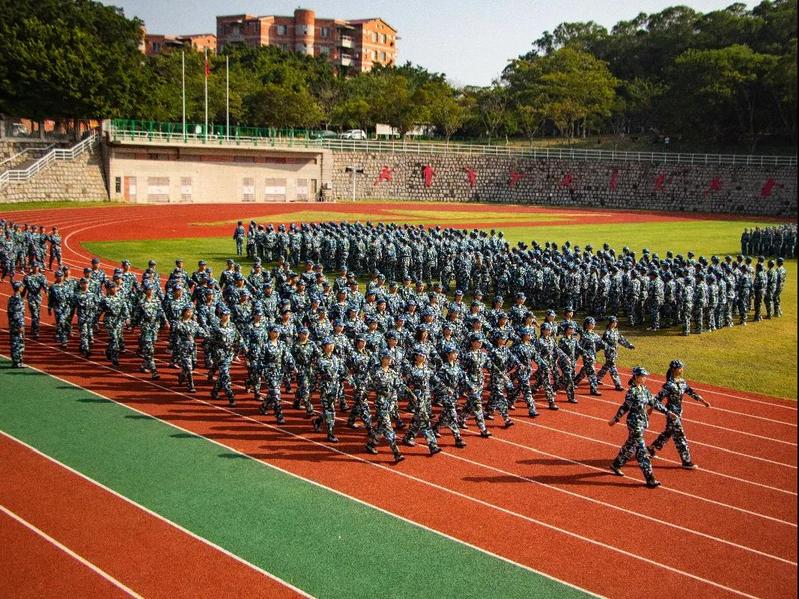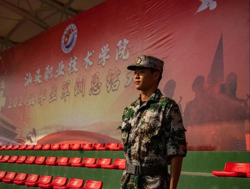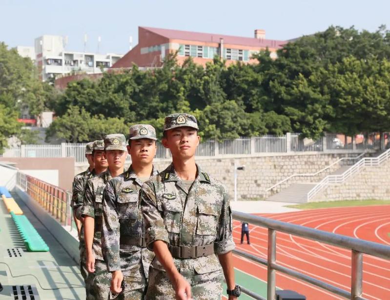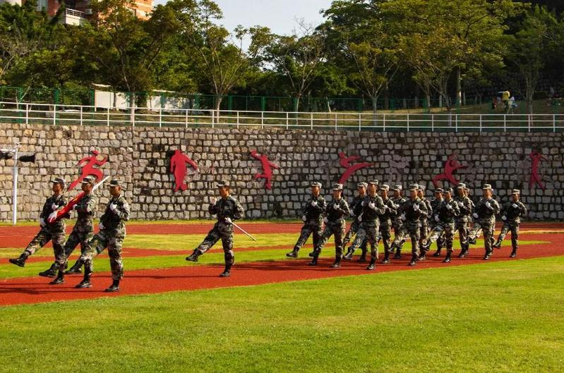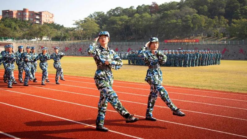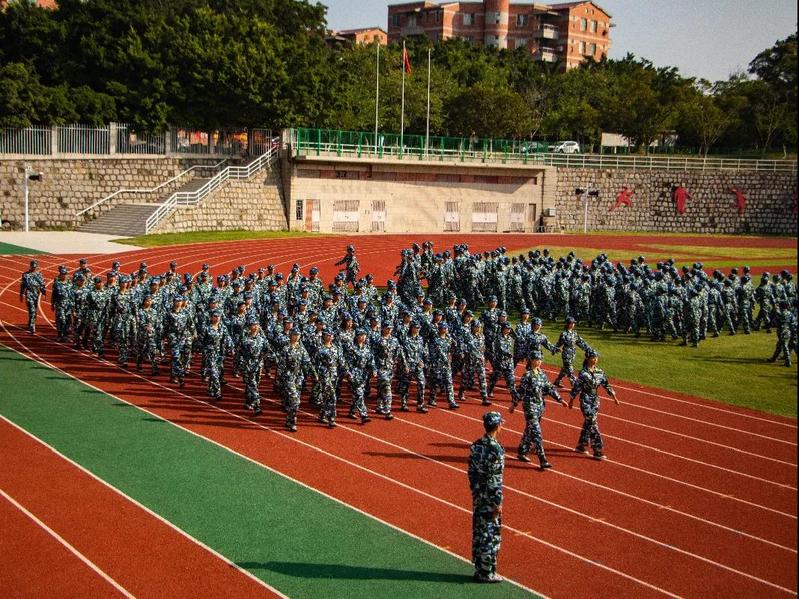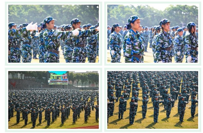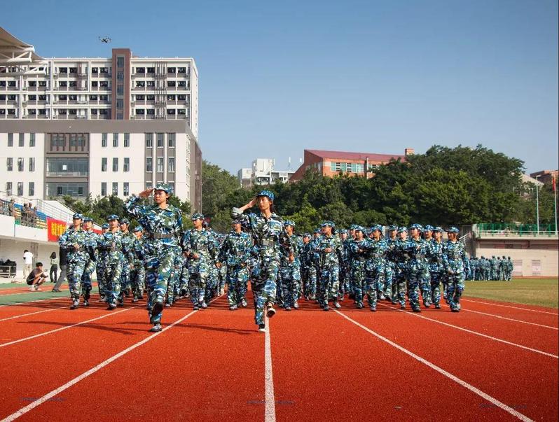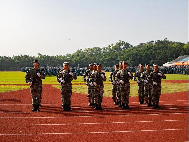 在军训即将结束的时候,他们把不舍化为在训练场上的飒爽英姿,迈着铿锵的步伐走过主席台,接受濠江区武装部和学院领导、老师们的检阅。