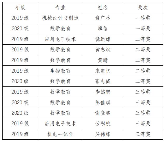 近日,我院自然科学系学子在第十一届广东省大学生数学竞赛(高职高专类)中取得2个一等奖,5个二等奖,5个三等奖的好成绩。为对接此次广东省大学生数学竞赛,在学院领导和技能实训中心的关心支持下,自然科学系高度重视此次比赛,指派责任心强、业务能力高的数学老师组成指导老师队伍,并在数学教育教研室童细心副教授牵头举办的2021年学院第六届高等数学竞赛中选拔出种子选手组成代表队。经过童细心、林懿、姜昆三位数学老师近两个月的培训辅导和赛前强化训练,选手们在汕头大学赛区的比赛中发挥出色。通过此次竞赛不仅很好地检验了我院高等数学课程教学效果,推动我院高等数学课程的改革与建设,激发相关专业学生学习高等数学的兴趣,培养学生分析解决问题的能力,提高创新性人才培养质量起到促进作用,也是自然科学系长期以来提倡“以赛促学、以赛促教、以赛促改”的成果体现。