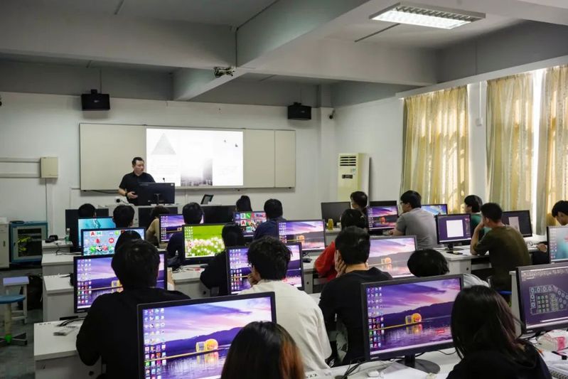 讲座结束后,周小酉主任携教师代表与博亚装饰设计有限公司黄灿文总经理、汕头市睿诚科技有限公司创办人、董事长郑植楠先生展开友好深入的交流座谈,校企双方就“产教融合”“校企合作”“招生就业”“校外实训基地建设”等方面初步达成合作意向。