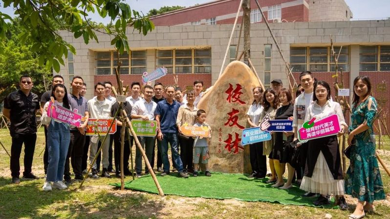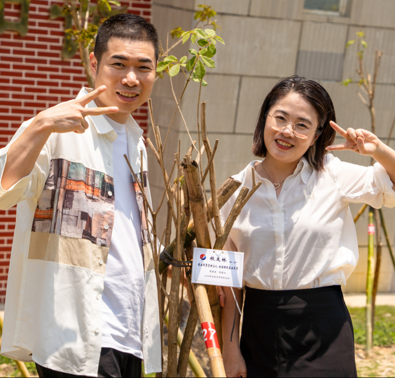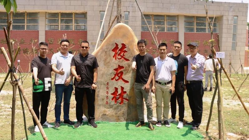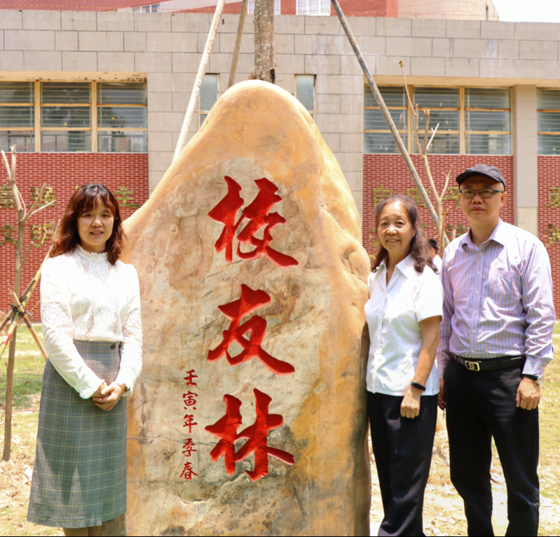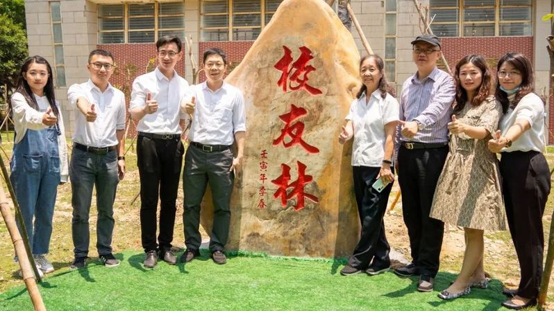 校友与“校友林”碑合影