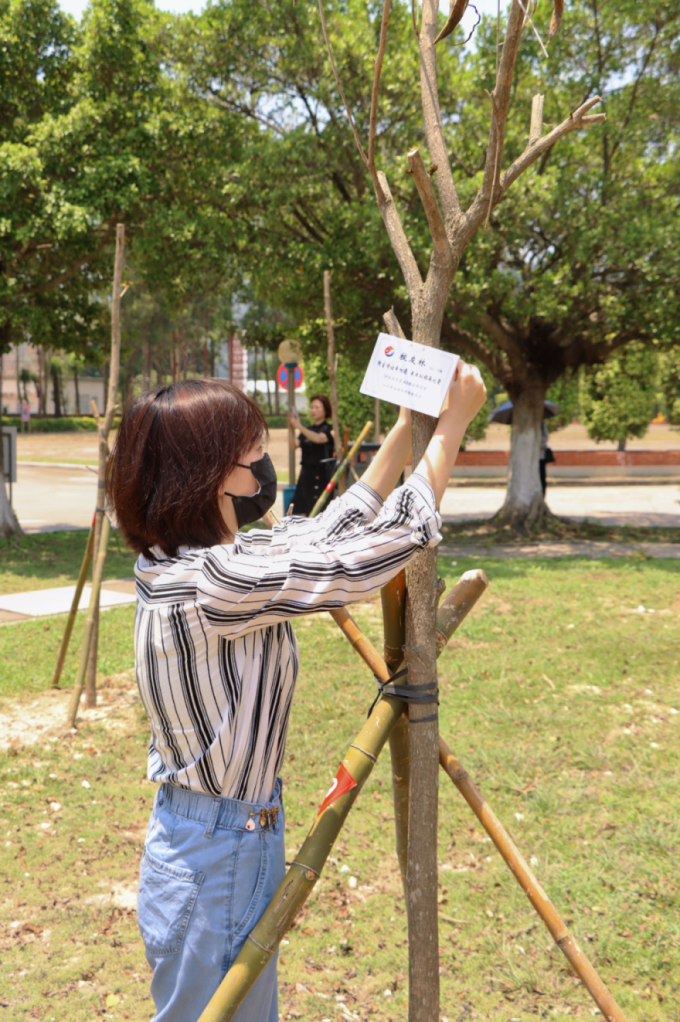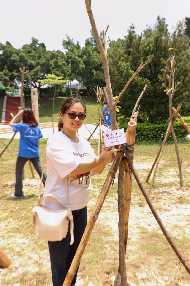 活动最后,学院领导、校友代表及师生代表一同为“校友林”挂上爱心认养铭牌。