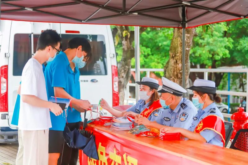 宣讲会结束后,在学术报告厅外举行了民警师生互动的宣传活动。“全民反诈、汕头无诈”主题宣传通过派发防范电信网络诈骗宣传单和现场指导下载反诈app,提醒同学们谨防各类诈骗手段,筑牢诈骗“防火墙”。“全民禁毒、无毒人生”主题宣传通过实物展示和专人现场解说,让同学们直观了解毒品的形态和危害性,提高对毒品的防范能力。“绿色交通,文明出行”主题宣传通过赠送“平安锦囊”,把各种常见交通违规的处罚标准、危害性等信息宣传到师生当中。