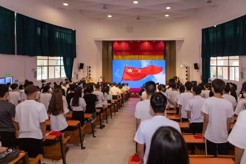 雄壮激昂的国歌声起,全体人员垂手肃立,齐唱国歌,在庄重热烈的气氛中,典礼正式开始。