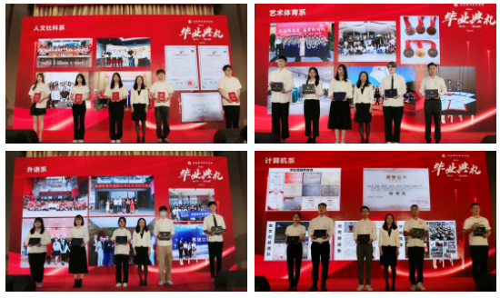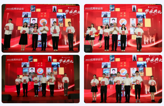 毕业典礼上,王小辉书记和吴萍院长分别为优秀毕业生代表和毕业生代表颁发证书。