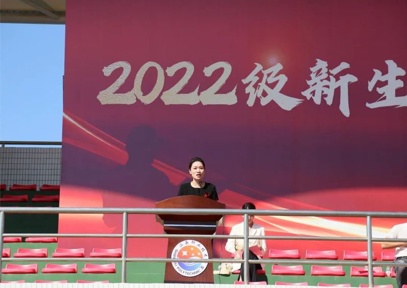 教师代表、外语系教师薛杏丽勉励2022级新生要珍惜美好青春年华,德技并修,知行合一,努力成为一个有理想、有品德、有能力的人。