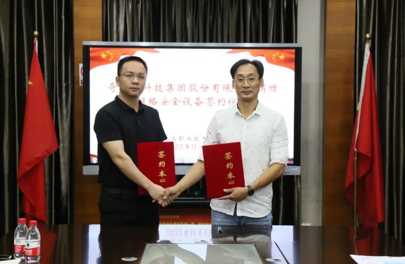会上,林副院长代表学院师生向奇安信科技集团股份有限公司对学院的大力支持表示衷心的感谢,并简要介绍了学院办学及“双高”建设的基本情况。他指出,随着大数据时代的到来,公众对网络与信息安全的需求较为迫切,高校相关专业毕业生的数量与质量和企业实际需求之间存在一定的供需错配,要利用此次捐赠的网络安全教学实训设备与学院现有的基础,探索在计算机系新建设网络安全相关专业的可能性。销售总监梁卫卫指出,此次向学院捐赠设备总价值约180万元,他表示,奇安信集团将积极推进校企合作建设,与计算机系深化交流合作,协同共建网络安全产教融合实训基地,尽快推动基地成型落地。最后,在双方见证下,技能实训中心部门副主任陈榕同梁卫卫总监签署捐赠协议,计算机系主任刘钦创接受梁卫卫总监仪器捐赠。