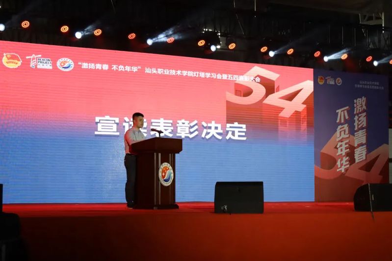 为表彰学校青年奋发向上的先进事迹,树立榜样,近日,学校团委在校本部标准运动场举办“激扬青春 不负年华”2022—2023年度bwin必赢唯一官方网站灯塔学习会暨五四表彰大会。共青团汕头市委员会四级调研员郑廷栋、学校党委副书记方小铁出席大会。表彰大会由校团委主要负责同志主持。