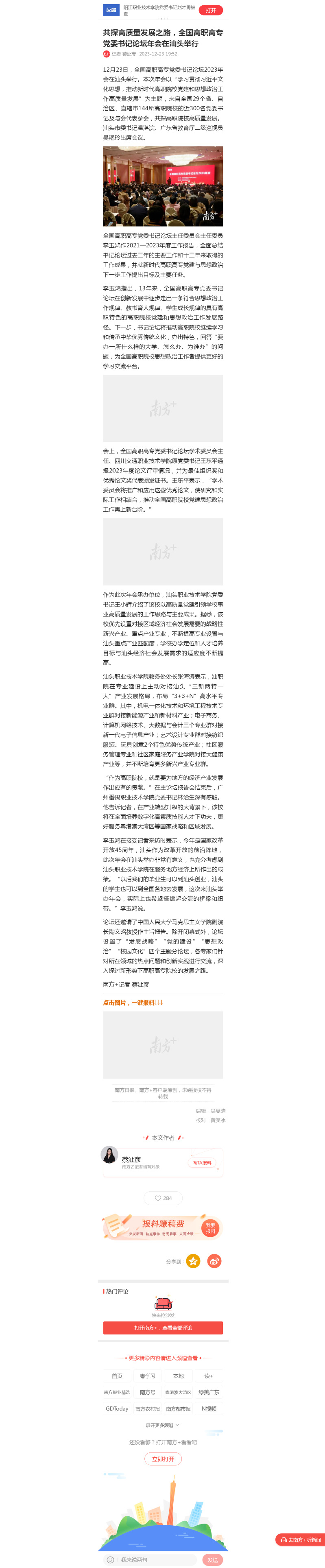 共探高质量发展之路,全国高职高专党委书记论坛年会在汕头举行