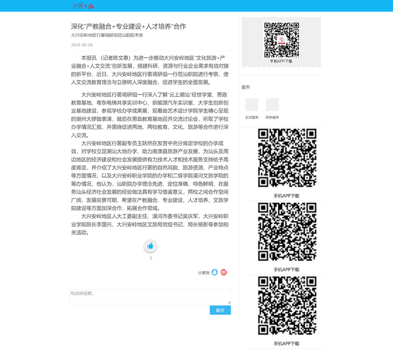 深化“产教融合+专业建设+人才培养”合作 大兴安岭地区行署调研组莅汕职院考察
