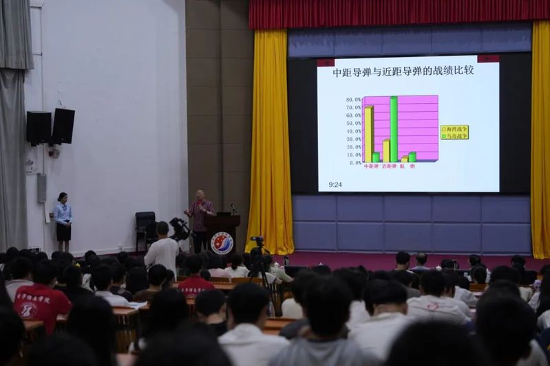 讲座中,徐邦年教授结合自己在飞行安全、失速螺旋等领域的教学科研成果和切身体会,就“未来空战与国家安全形势”主题进行深度分析和解读,通过未来空战特点、我国空军装备、周边安全形势、我国战略目标、目前的对策、空天一体化作战等角度,为师生们揭示了未来空战与国家安全战略之间的紧密联系,也让在场师生们收获一次生动形象而又意义深刻的爱国主义教育。讲座结束后,师生代表就空军战力与台湾局势、无人机使用平民化等相关热点话题进行提问,徐邦年教授向师生们解答并分享了自己的观点,现场气氛热烈。