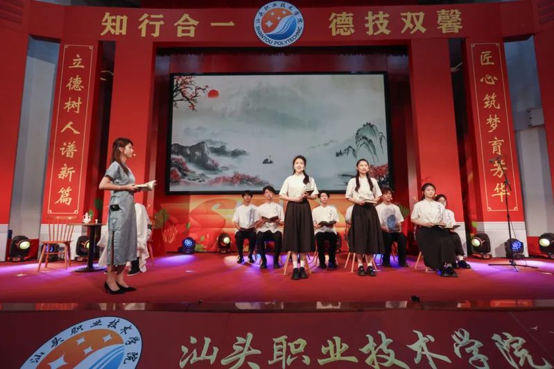 校友代表、94届财会专业毕业生、中国农业银行汕头达濠支行行长、高级国际财务管理师汤锐铓做分享发言。现场,他为师生分享了自己写的小诗《春晨,我在草丛里散步》《实习》《英雄》《白云的快乐》,作为自己毕业三十年来各个阶段的小结,对学校栽培表示感恩,表示将更多地关注母校发展并参与其中,倡议全体毕业生要懂得感恩,回馈社会和母校。