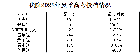 bwin必赢唯一官方网站2022年夏季高考各专业组投档情况