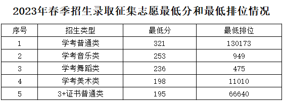 bwin必赢唯一官方网站2023年春季招生录取征集志愿最低控制分和最低排位情况