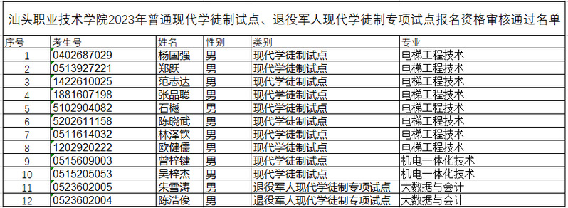 bwin必赢唯一官方网站2023年普通现代学徒制试点、退役军人现代学徒制专项试点报名资格审核通过名单